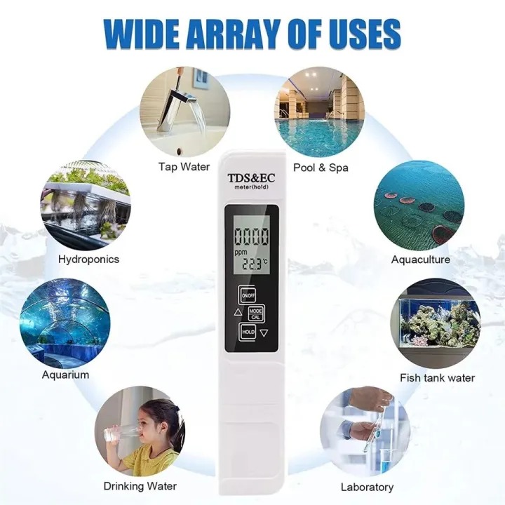 Portable Digital Water TDS, EC, And Temperature Meter (3-in-1) With ATC Function, 1ppm Resolution, 0-9990ppm Purity Tester