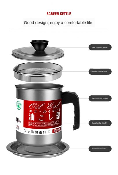 1.4L Stainless Steel Oil Filter Pot Oil Strainer Frying Pot Container Jug Storage Can Cooking Separator Tank Kitchen Tools